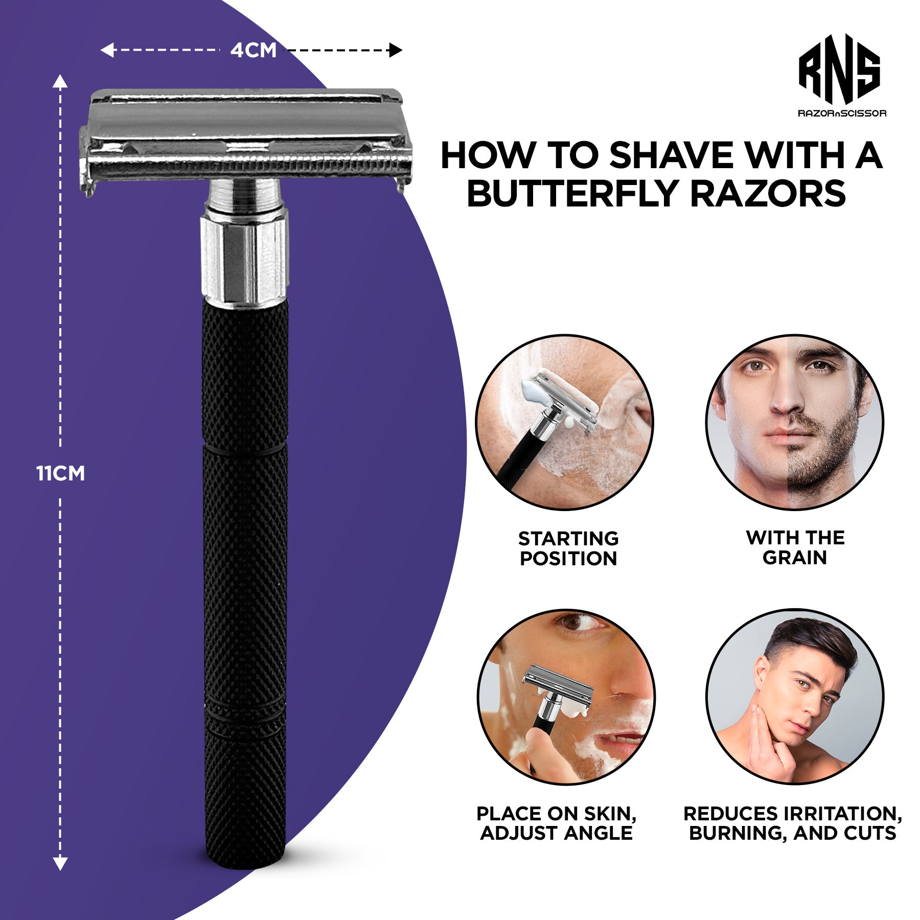 The butterfly twist-to-open mechanism ensures effortless and safe blade replacement, making it ideal for both beginners and professional barbers. Its textured grip handle provides a secure hold, even with wet hands, allowing for a smooth, irritation-free shave every time.